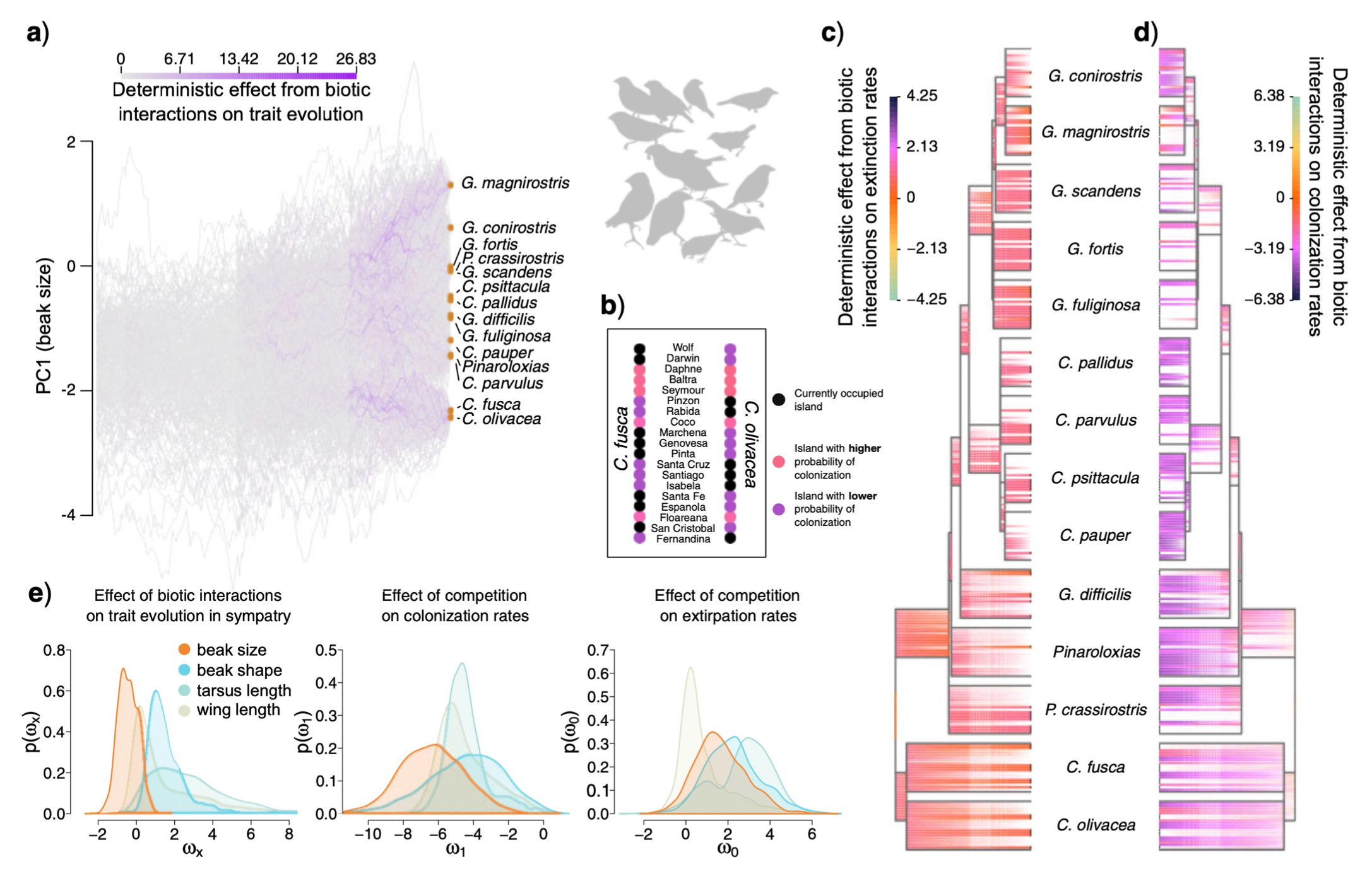 - Michael and collaborator Ignacio Quintero (ENS Paris) have a new paper that introduces a new framework for modeling the interdependent evolution of phenotypes and biogeography among co-evolving (e.g. competing) phylogenetic lineages, with an application in Darwin’s finches from the Galapagos.