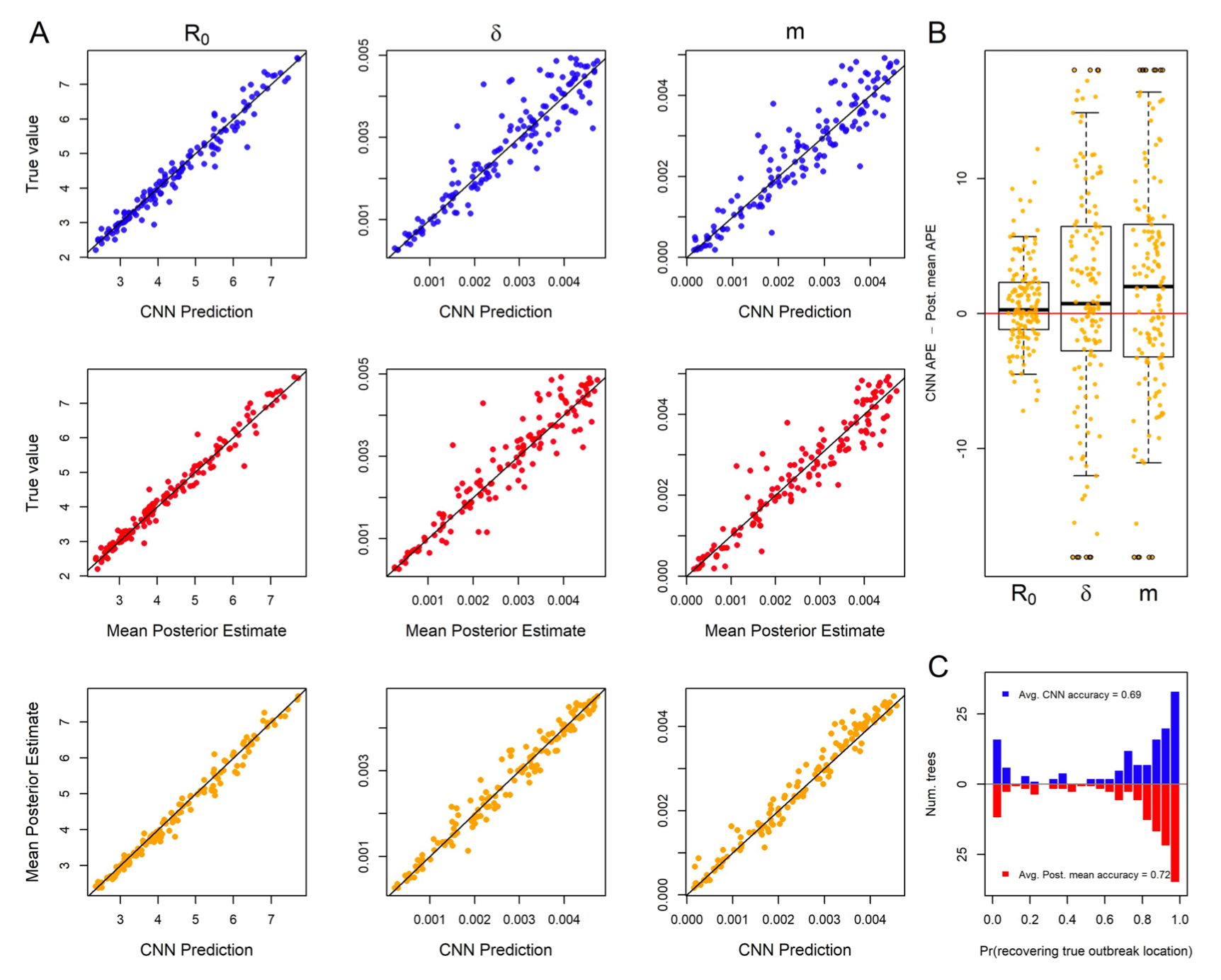 - New work led by Ammon Thompson now accepted and online in Systematic Biology. The work shows that convolutional neural networks trained for viral phylogeography perform similarly to gold-standard Bayesian methods under a range of realistic model misspecification scenarios. Some ideas captured in the Phyloseminar recording, here.