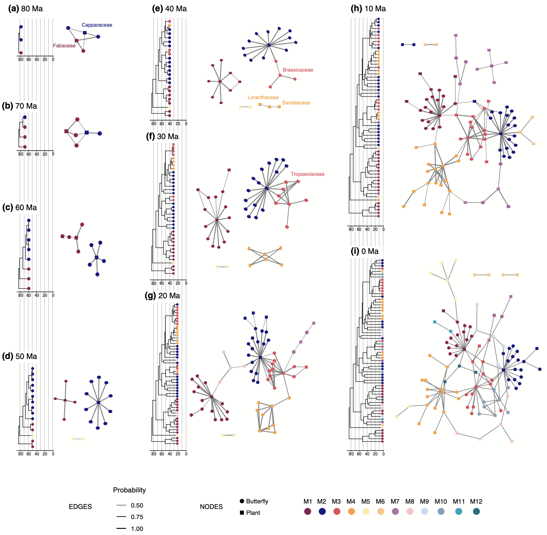 - We have a new paper out in Ecology Letters, introducing a new phylogenetic method to reconstruct how ecological networks (e.g. between plant and butterfly species) evolved over deep time scales. Read more here!